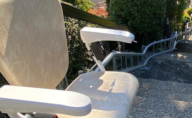 Our Outdoor stairlifts are built to withstand the elements and stand the test of time. The chair won’t age from being outside - it’s made from UV-resistant plastic so won’t fade in the sun.